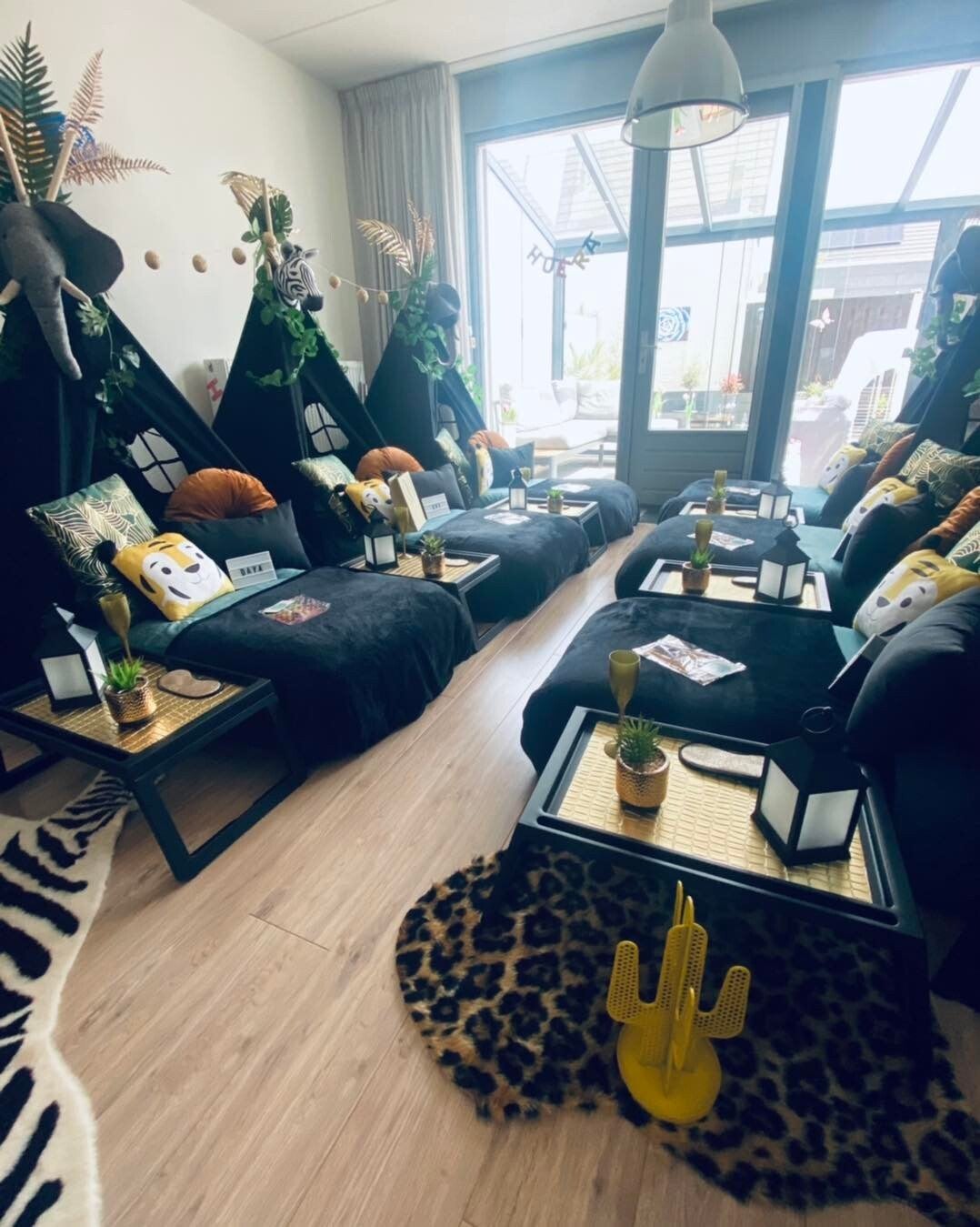 Elke dromer krijgt haar eigen plekje in deze wilde, maar knusse wereld — met zachte kussens, gezellige dekentjes en een sfeer die tegelijk avontuurlijk en rustgevend aanvoelt. Hier worden verhalen verteld alsof je samen rond een kampvuur zit, ergens diep in de jungle.